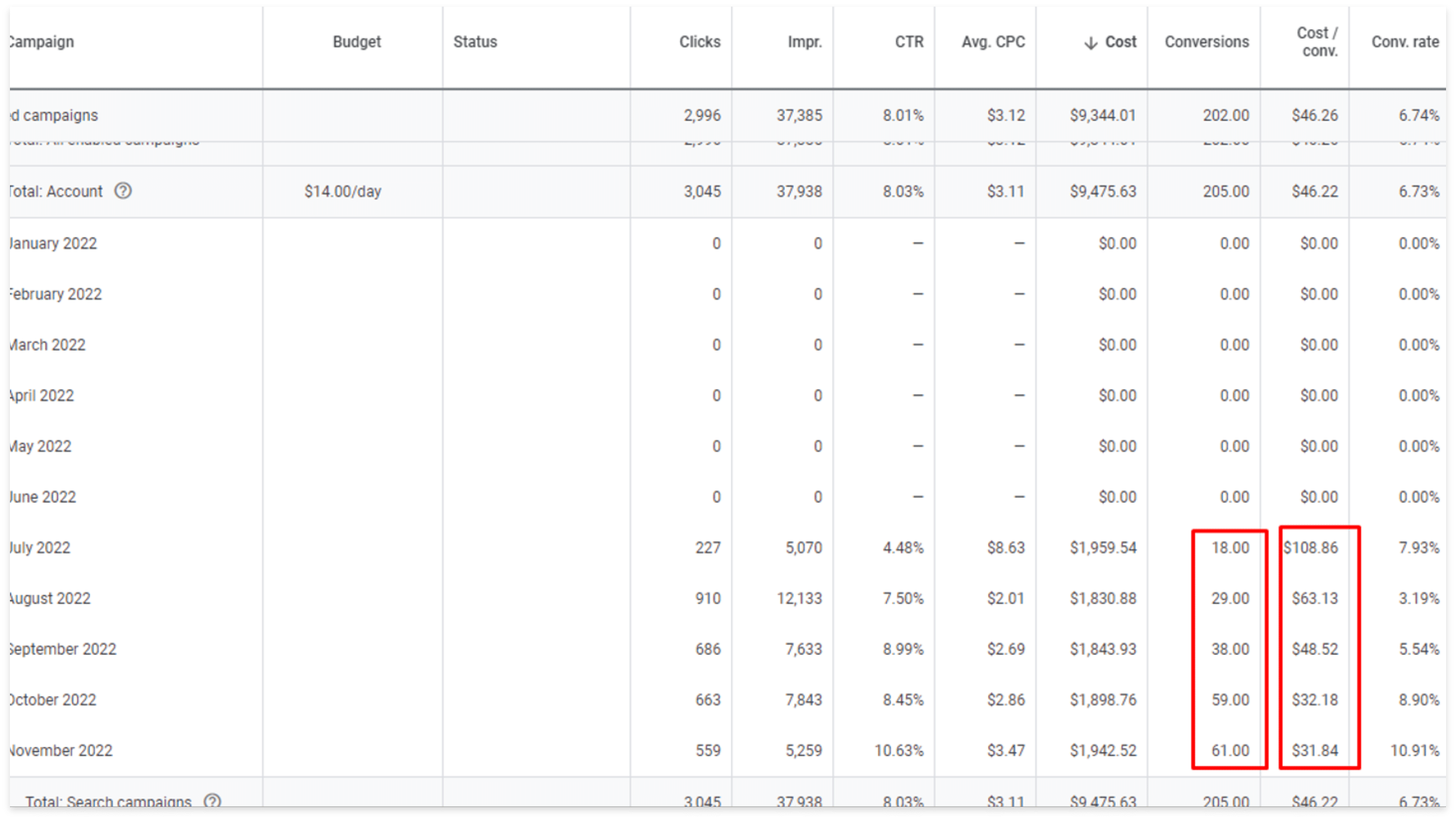 According to WordStream, the average cost per lead for beauty and personal care services is $40, which means that the client’s current google ad campaign was producing weak results.
