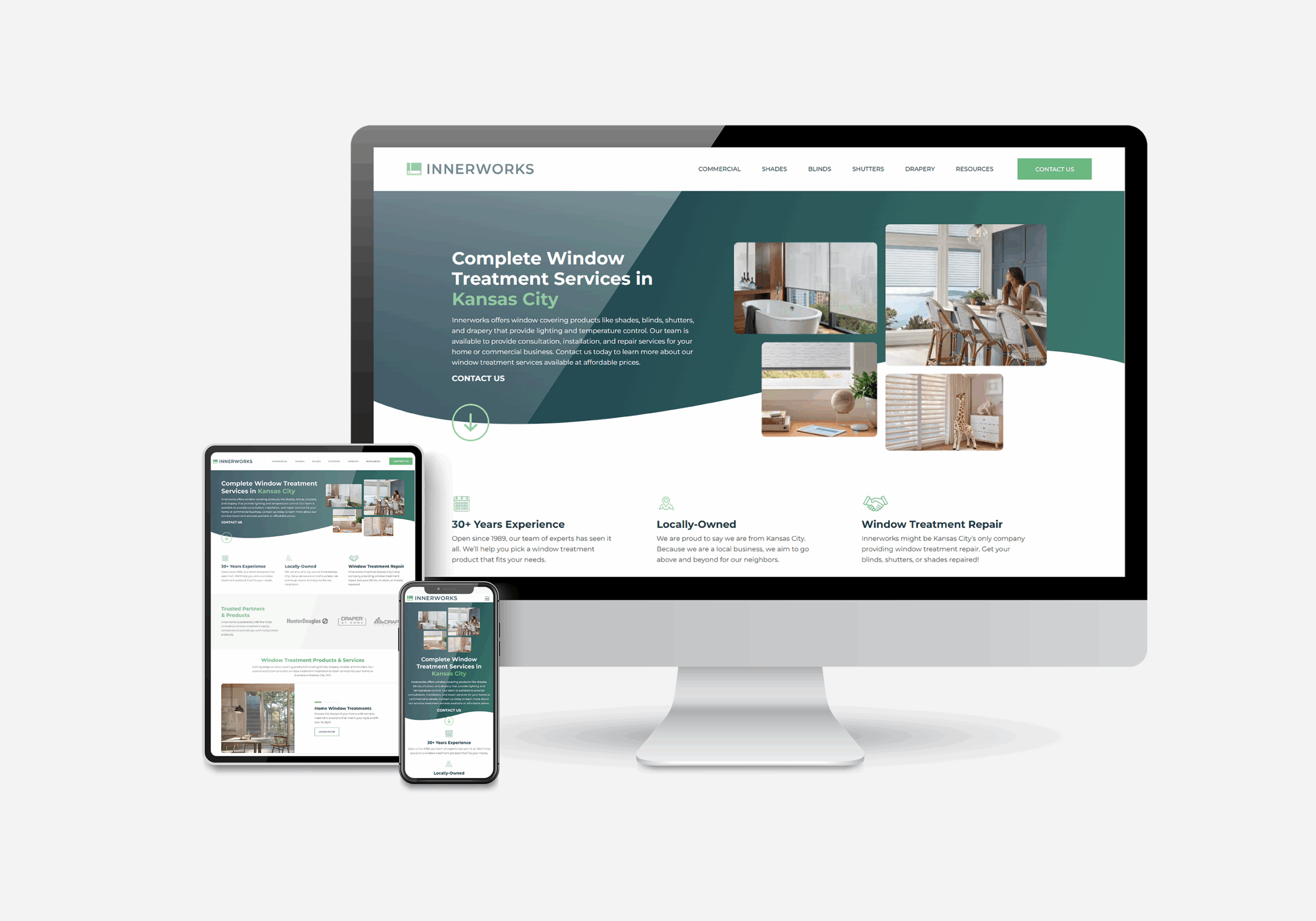 Innerworks is a locally-owned window treatment company providing installation and repair services for shades, blinds, shutters, and drapery for homes and commercial businesses in Kansas City. Having been in business since 1989, their brand has gone through several transformations. Just like a new window treatment can breathe new life into a room, their website needed the same refresh.