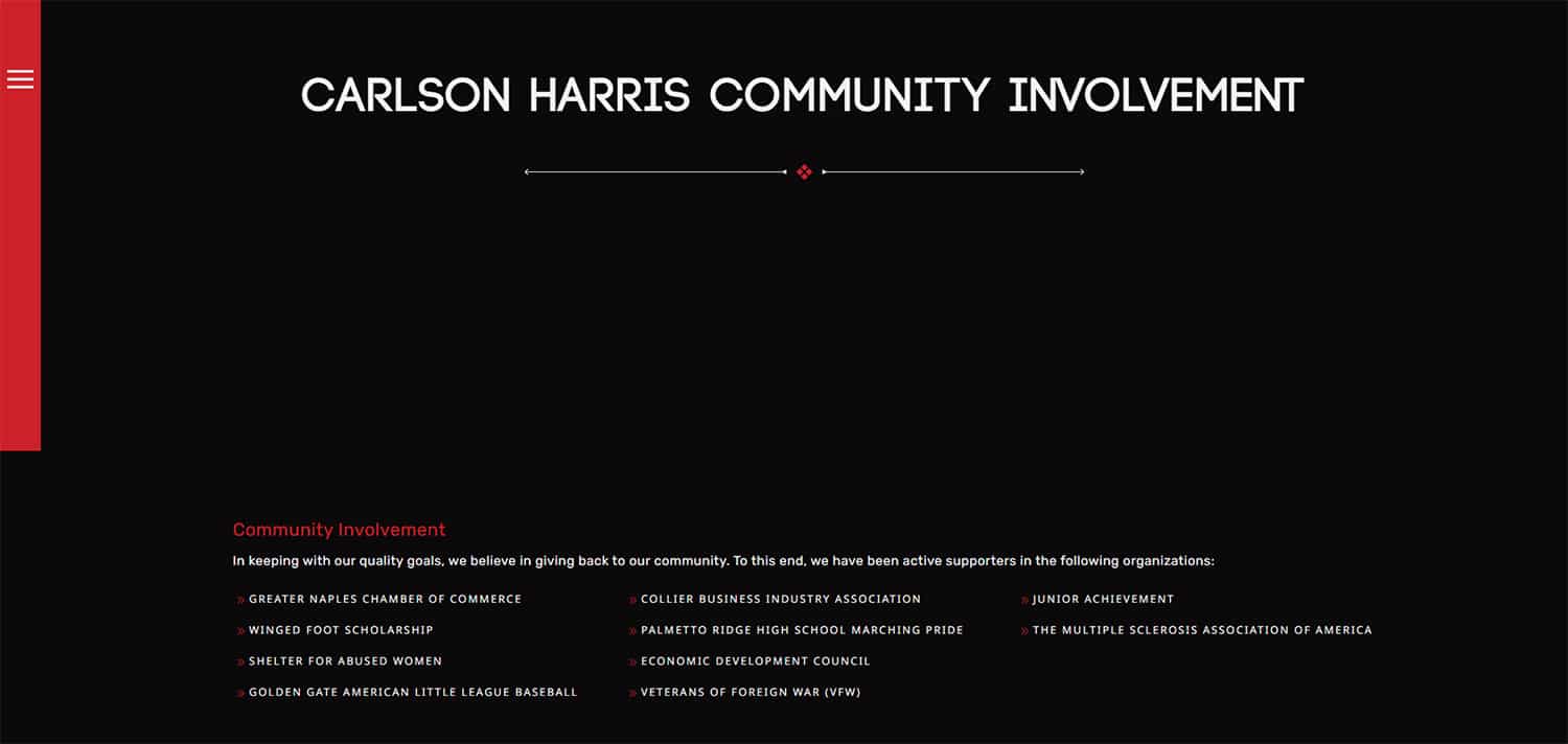 Carlson Harris needed a modern, user-friendly website to replace their outdated, hard-to-navigate design. The new site improves functionality, showcases a sleek aesthetic, and prioritizes SEO for better visibility and usability.
