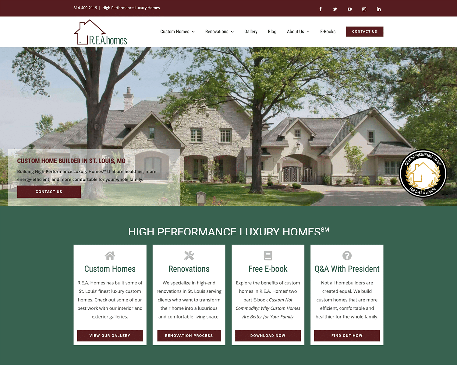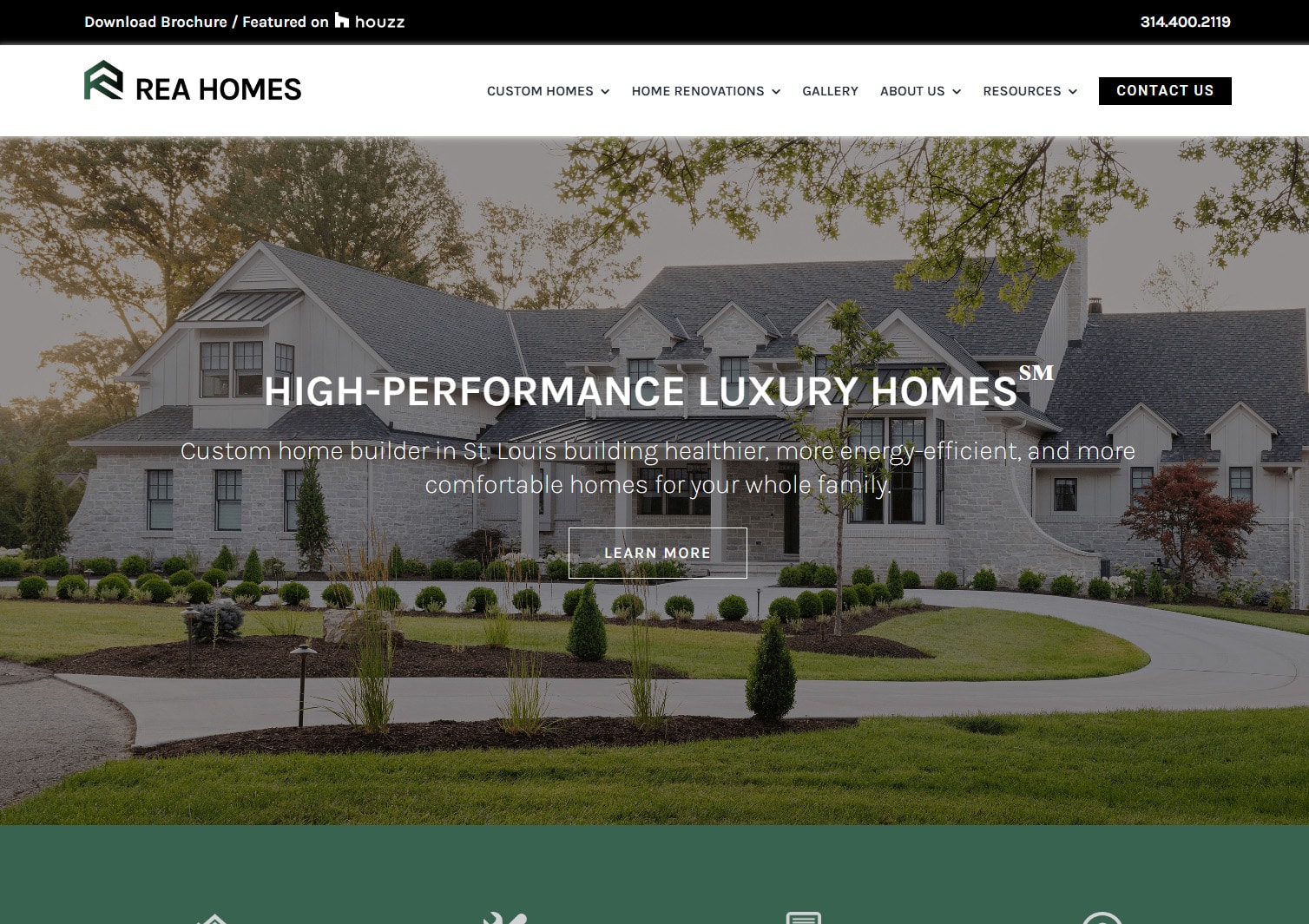 REA Homes, a luxury custom home builder, collaborated with us for a brand and website overhaul. Their previous site didn’t fully showcase their craftsmanship or eco-friendly approach. The result is a polished online presence that better reflects their values and attracts high-end clients, ultimately driving more qualified leads.
